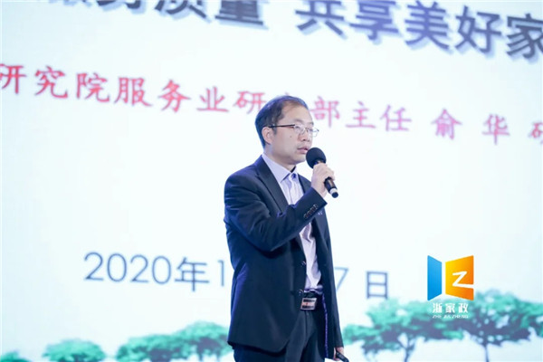 商務(wù)部研究院服務(wù)業(yè)研究部主任俞華圍繞“提升家政服務(wù)質(zhì)量、共享美好家園生活”主題進行了主旨演講。