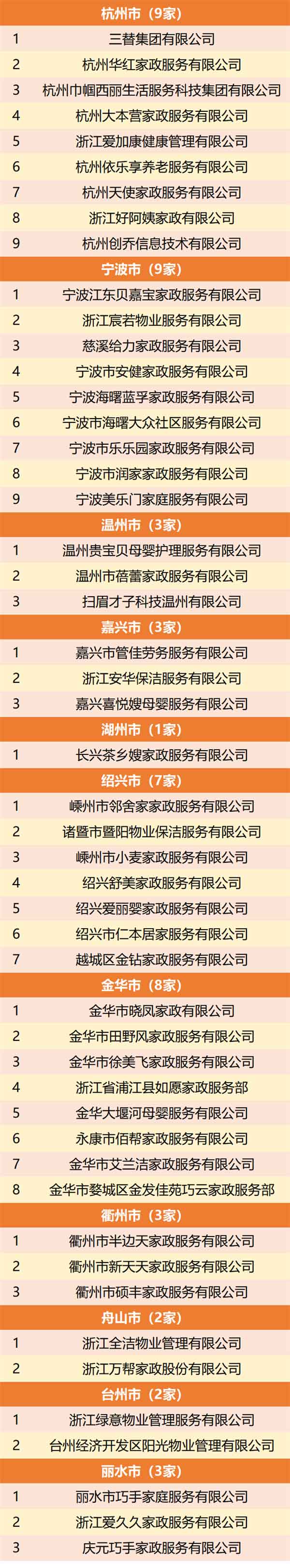 2020浙江省家庭服務(wù)行業(yè)示范企業(yè)