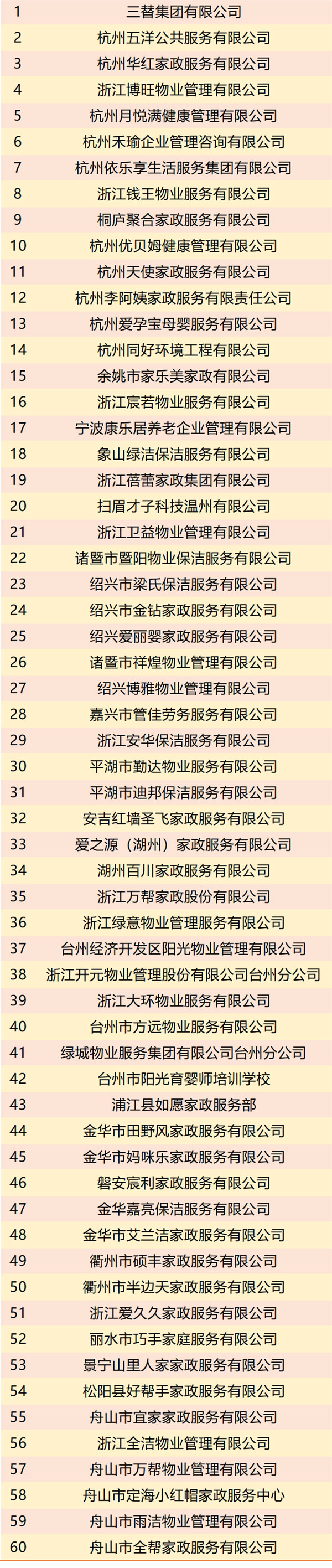 浙江省家政行業(yè)‘三強’首批培育企業(yè)