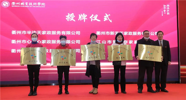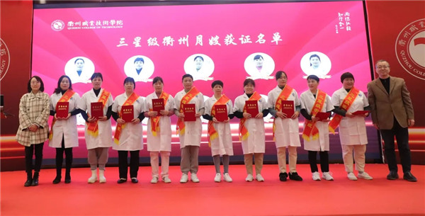 市農(nóng)業(yè)農(nóng)村局黨委副書記、副局長張金華,校黨委委員、副校長傅元勛為10位金牌級衢州月嫂頒獎。